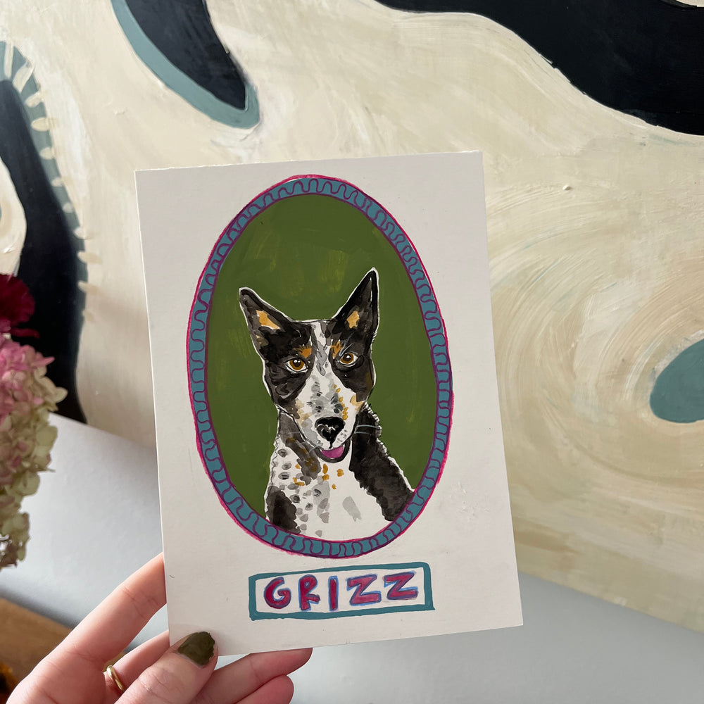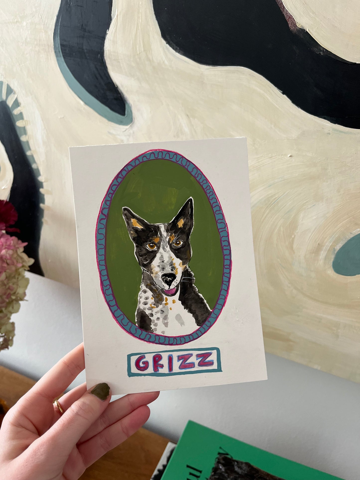 5x7 hand painted custom pet portraits. Painted in gouache and detailed with colored pencil. The perfect fun way to celebrate your best friend.